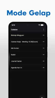 Untuk kenyamanan maksimal, aplikasi ini dilengkapi dengan fitur-fitur unggulan seperti widget yang dapat digulir dan diletakkan di layar utama, memungkinkan Anda melihat catatan penting tanpa perlu membuka aplikasi. Tak perlu khawatir kehilangan progres, karena fitur penyimpanan otomatis memastikan setiap tulisan Anda selalu tersimpan dengan aman. Navigasi sangat sederhana: geser ke kiri untuk menghapus catatan atau geser ke kanan untuk memberi warna. Dengan mode gelap yang nyaman untuk mata dan kemampuan untuk berbagi catatan melalui aplikasi pesan, alat pencatat ini benar-benar all-in-one. Semua fitur ini tersedia secara gratis, menjadikannya pilihan ideal untuk siapa saja yang mencari penyelenggara ide yang efisien dan tanpa kerumitan.