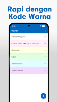 Aplikasi serbaguna ini lebih dari sekadar notepad biasa; ia adalah teman setia yang membantu Anda menyusun daftar harian, mencatat pelajaran penting, atau bahkan mendokumentasikan jurnal pribadi. Jadikan perangkat Anda sebagai kanvas digital untuk ide-ide, memungkinkan Anda mengubah pikiran spontan menjadi catatan terstruktur. Manfaatkan fitur kode warna yang cerdas, yang menawarkan enam pilihan warna berbeda untuk membantu Anda mengkategorikan dan mengidentifikasi setiap catatan dalam hitungan detik—bayangkan merah untuk tugas kerja mendesak atau hijau untuk daftar belanja mingguan. Ini adalah cara praktis untuk menjaga setiap detail hidup Anda tetap rapi.