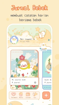 Masuki dunia ketenangan dan kehangatan personal bersama Ducky Notes, aplikasi jurnal yang dirancang khusus untuk memeluk setiap momen hidupmu. Dengan sentuhan tema "Ducky" yang menggemaskan dan menenangkan, Ducky Notes hadir sebagai sahabat setia yang siap mendengarkan cerita, impian, dan refleksi harianmu. Bayangkan memiliki teman kecil yang selalu ada, menemanimu mencatat setiap detail perjalanan emosional, di mana pun dan kapan pun.