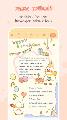 Agar kamu tak pernah melewatkan satu hari pun, Ducky Notes dilengkapi dengan fungsi kalender bulanan yang intuitif dan jernih, memungkinkanmu meninjau kembali seluruh catatan diary secara akurat. Pengembang Ducky Notes berdedikasi untuk terus menyempurnakan pengalamanmu, dengan rencana pengembangan fitur seperti pendamping disiplin diri, pencatat suasana hati, hingga wadah untuk berbagi keluh kesah. Ini bukan hanya sebuah aplikasi, melainkan ruang pribadi yang tumbuh bersamamu, didorong oleh setiap masukan dan saran darimu.