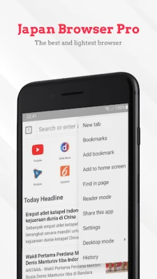 Japan Browser Pro juga mengutamakan keamanan dan informasi Anda. Lindungi data pribadi Anda dengan lapisan keamanan tambahan melalui kode sandi unik, memastikan privasi Anda tetap terjaga setiap saat. Selain itu, tetap terhubung dengan berita terkini melalui pembaruan berita harian yang disajikan langsung di dalam peramban, membantu Anda selalu *up-to-date* dengan perkembangan terbaru. Yang terbaik dari semuanya, nikmati semua keunggulan ini tanpa biaya tersembunyi atau kejutan. Japan Browser Pro menjamin transparansi penuh, memberikan pengalaman berselancar internet yang cepat, stabil, dan benar-benar bebas dari kekhawatiran finansial.