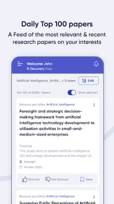 Temukan wawasan yang belum pernah ada sebelumnya dengan kapabilitas AI cerdas dari R Discovery. Dapatkan rekomendasi bacaan yang dipersonalisasi berdasarkan minat penelitian Anda, mencakup paten, konferensi, seminar, hingga artikel akses terbuka terbaru. Gunakan fitur 'Ask R Discovery' untuk mendapatkan wawasan instan berbasis ilmiah dengan kutipan terverifikasi, menjadikannya mesin pencari AI yang sempurna untuk riset Anda. Butuh memahami penelitian panjang dalam sekejap? Fitur 'Research in Shorts' meringkas poin-poin penting dalam format yang mudah dicerna, mirip dengan cerita media sosial, hanya dalam dua menit. Selain itu, R Discovery menyediakan akses institusional ke artikel jurnal berbayar melalui kredensial universitas Anda, berkat integrasi GetFTR & LibKey.