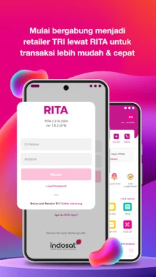 RITA: Retailer Tri Indonesia adalah aplikasi wajib bagi retailer Tri terdaftar. Tingkatkan produktivitas Anda dengan pembelian 3sakti online, isi ulang pulsa, aktivasi KPK, dan pantau program Tri untuk cuan lebih besar, kapan saja di mana saja.