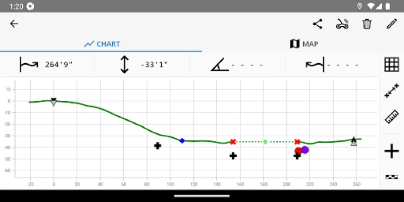 Visualisasikan lokasi kerja Anda dengan kejelasan yang belum pernah ada sebelumnya. Saat Anda menyusuri jalur pengeboran yang diproyeksikan dengan DCI TeraTrak ® R1, aplikasi TeraTrak ® akan secara otomatis membangun peta medan secara real-time. Ini memungkinkan Anda menambahkan utilitas, titik arah, dan pin dengan catatan atau fitur penting lainnya yang perlu diketahui oleh kru Anda. Cukup sentuh dan seret pada titik mana pun di peta medan yang telah dibuat untuk melihat perubahan elevasi yang presisi. Anda dapat dengan mudah melihat jarak medan dan horizontal. Untuk gambaran cepat tentang kemiringan rata-rata sepanjang jalur pengeboran, TeraTrak ® juga akan menghitung kemiringan antara dua titik arah tertentu.